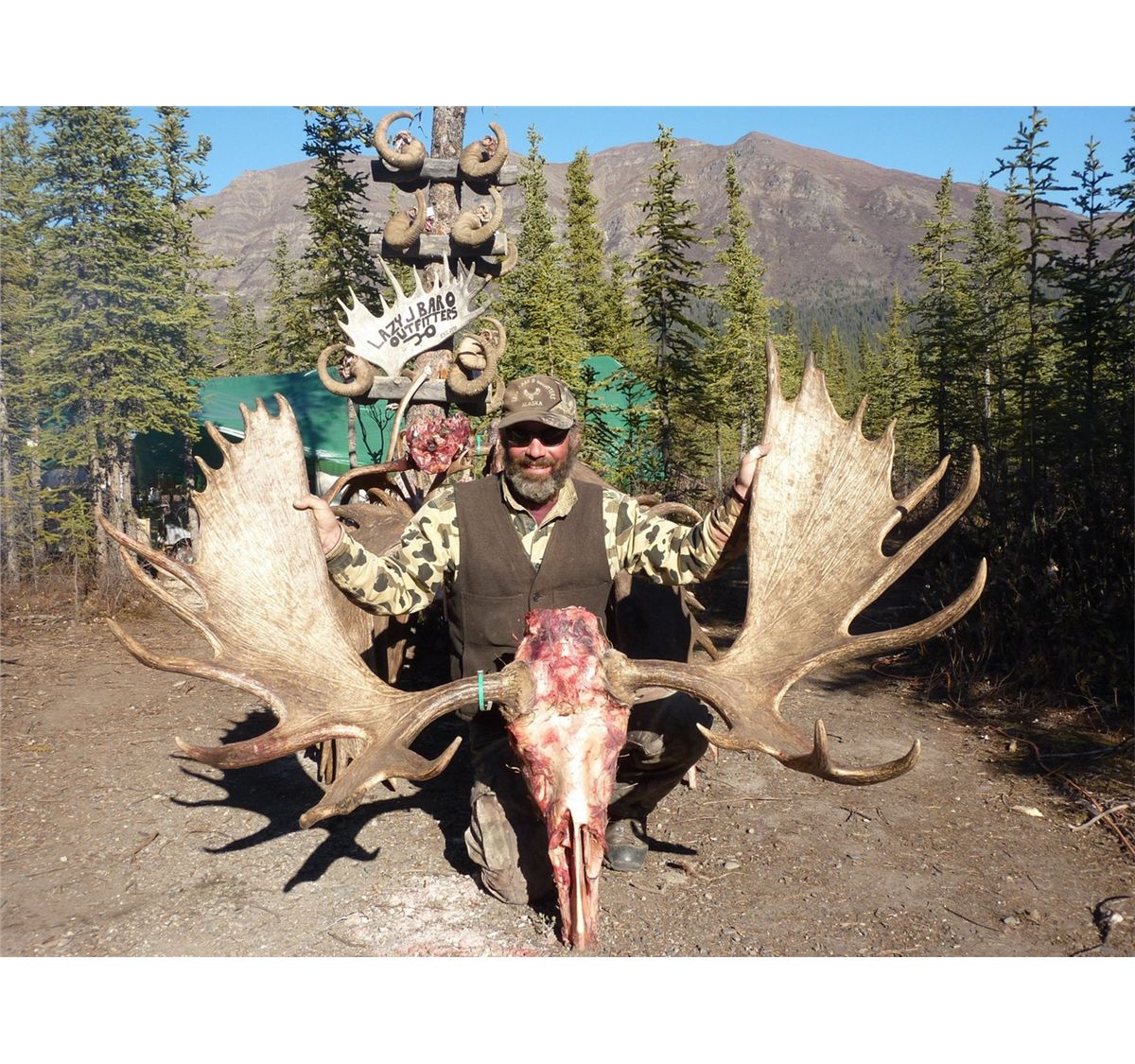 Special note: Lazy J Bar O Outfitters is proud to offer the finest in fair chase, high quality horseback hunting available for Alaskan big game. Experience the rugged beauty of the Alaska Range while hunting for moose. Mike has a good population of moose giving the hunter an excellent opportunity to take a great moose. The area has a 50" minimum or 4 brow tines; however Mike tries to keep the standards in the 55" plus range. Lately they have taken some great bulls measuring 60" to 70" and grossing over the 220" B&C mark. All great bulls in their own right! This is truly a high quality Alaskan hunt. Come and experience the back country with Master Guide, Mike Colpo and his top-notch guides.