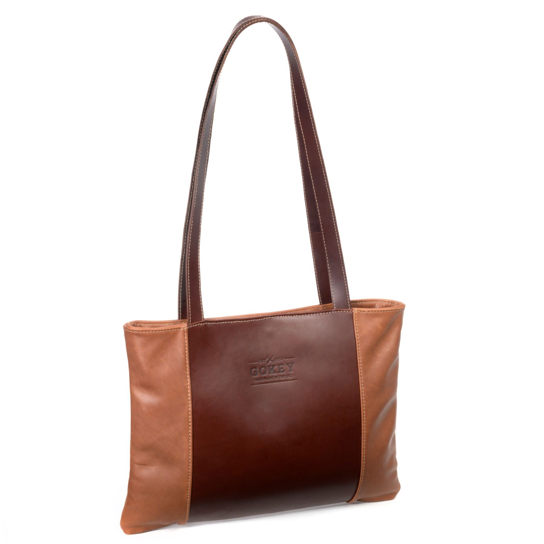 Description: A perfect everyday tote. The Autumn Prairie tote is crafted from distinguished burnished waxhide leather and soft bone leather which gives it a striking contrast. Distinguished brass rivets keep the rolled leather handles tacked securely in place. Easy to wear and large enough to carry all of your essentials. Soft and supple yet rigid enough to stand on its own, the Autumn Prairie Tote is the most versatile tote bag you’ll own. Burnished Waxhide Leather Bone Leather 15″ x 13″ SHIPPING WEIGHT 4.25 lbs SHIPPING DIMENSIONS 20 × 16 × 8 in Gokey is proud to announce the arrival of their first, much anticipated conceal carry handbag. With the same outstanding craftsmanship and attention to detail you expect from Gokey, the Sun Down purse is unmatched in quality. Made from soft Chestnut Gusset leather and polished 5-6oz Bootlegger leather, this purse is stylish and sleek. The Bootlegger leather straps are wide and comfortable, while the zippered, hidden conceal/carry pocket on the back, ensures your firearm is easily accessible. Fits most small caliber handguns. Chestnut Gusset Leather