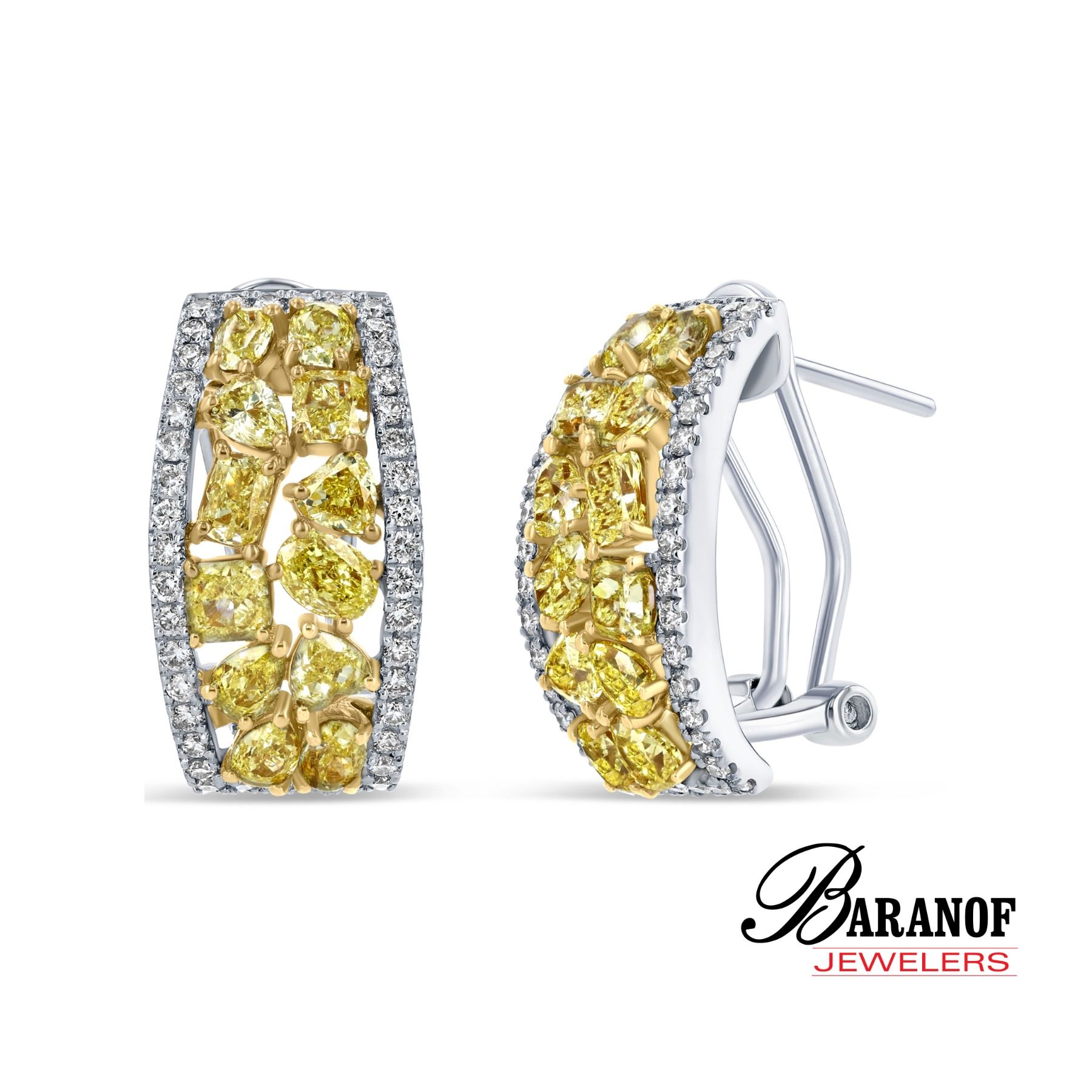 DONATION: Natural fancy yellow diamonds and white diamond earrings set in 18 karat white gold, set with 3.25 carats of Fancy yellow diamonds, 0.70 carats of white diamonds, Clarity is Vs2.