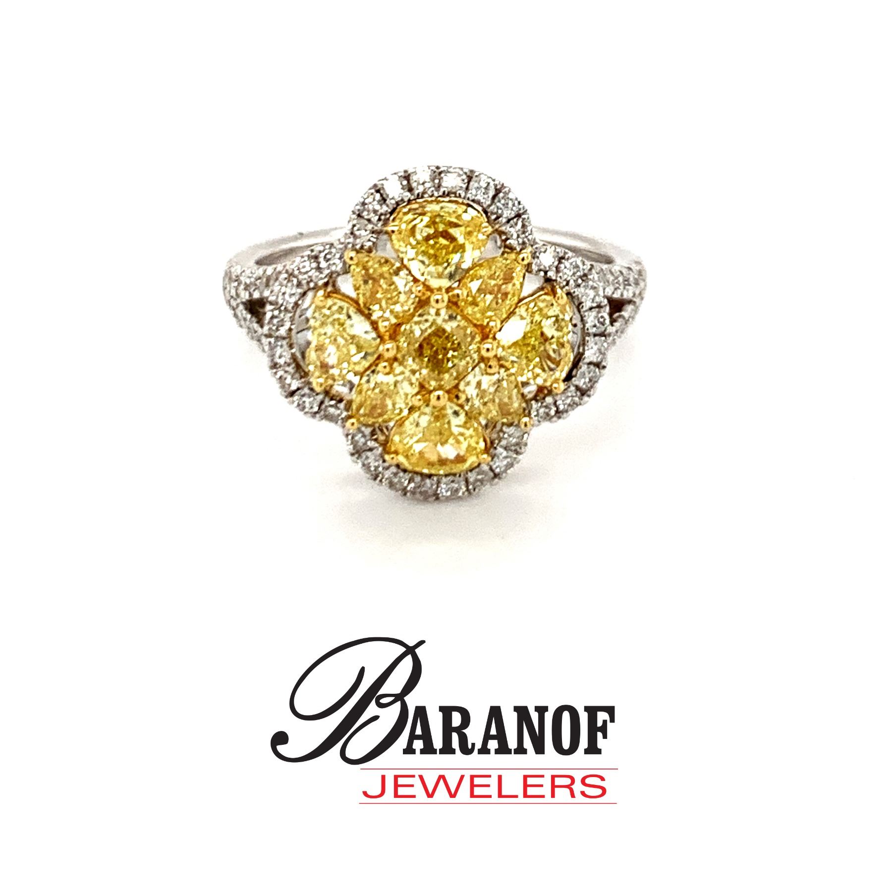 DONATION: Natural fancy yellow diamond & white diamond ring set in 18 karat whit gold. 2.10 carats in fancy yellow diamonds clarity is VS1 with .55 carats in white brilliant round cut diamonds which are VS2 in clarity