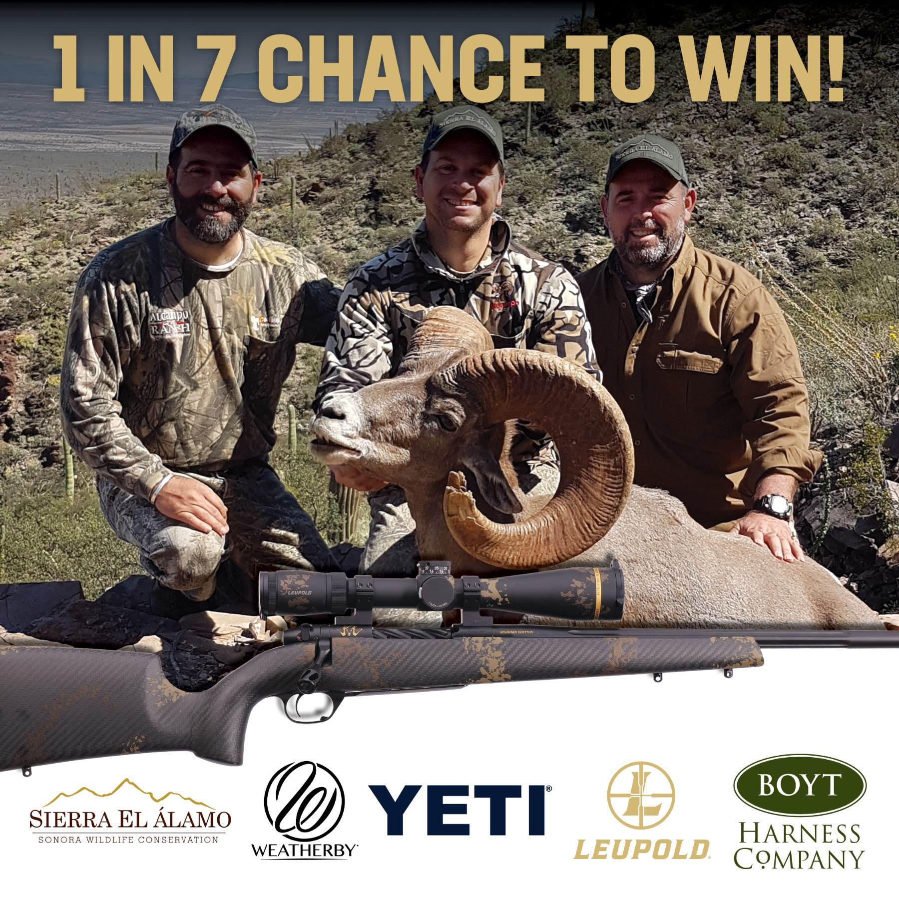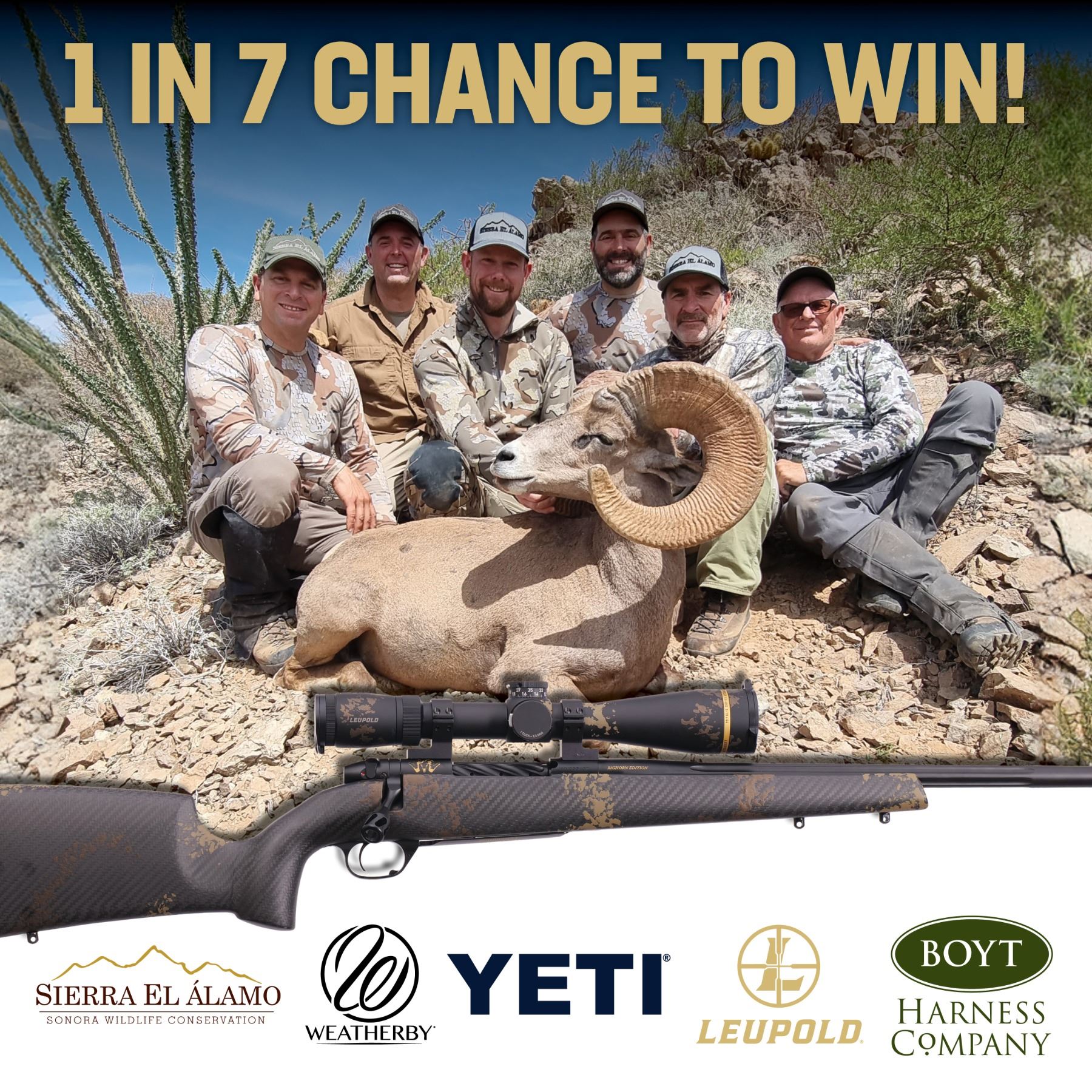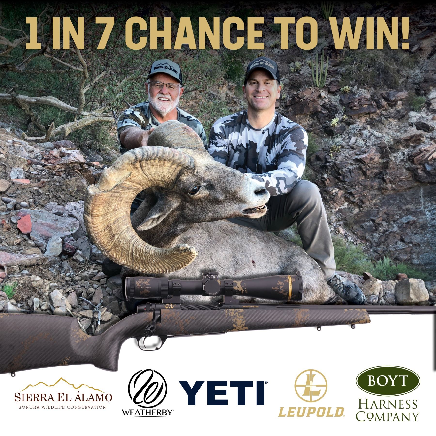 DONATION: WIN BIGGER THAN BIG...Win a 2027 Desert Sheep Hunt with Sierra El Alamo! One in 7 chances to the hunt of a lifetime!