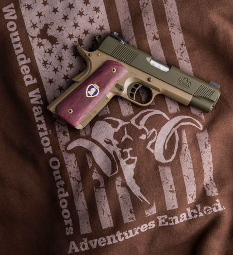 DONATION: WWO Special Purple Heart 1911, serial #1 of a sold-out Limited Edition. This is the last one! All-American made based upon Republic Forge’s Valiant model in .45 ACP with a 4.25” barrel. Grips are crafted in Purple Heart Wood which is inlaid with a miniature Purple Heart medal as well as the WWO medallion. Also included is a special edition WWO Presentation Buckle by Montana Silversmiths. These buckles cannot be purchased and are awarded to “buckle winning” Wounded Warrior’s on WWO Adventures Enabled trips as well as individuals that go above and beyond in support of our deserving warriors.