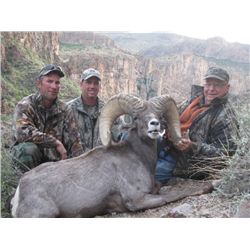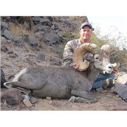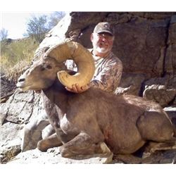 Arizona remains the premier state for Mexicana desert sheep and quality rams. Over the past decade Arizona has continued to produce an astonishing number of outstanding trophies. On average more than a dozen make the B&C book every year; at least one or more Score:s better than 180”. The previous 2011 season was another typically great year for Mexicana sheep hunters in Arizona with 17 rams scoring more than 170” and almost 40% of the overall harvest potentially making the book. Two of these majestic rams Score:d well over 180”, and one almost touched the magical 190” mark! Predictions for the 2012 and 2013 seasons are every bit as bright and there is no finer opportunity than Arizona for taking an exceptional Mexicana desert sheep. Last year, Mike Carpinito, the 2011 Arizona Auction Tag Buyer, harvested a tremendous ram in October 2011 which green Score:d 188-7/8”. The 2012 Arizona auction tag buyer, Gus Arvelo harvested another superb ram in August 2012 with and official B&C Score: of 185-1/8”.