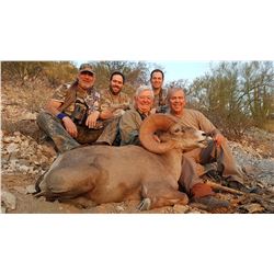 The Javier Artee family is proud to continue our strong partnership with the Wild Sheep Foundation in restoring free-ranging desert bighorn sheep to historic habitat within Sonora, Mexico. Established in 2017, Sierra El Alamo spans over 80,000 acres, and is located approximately 160 miles south of Tucson, AZ, 180 miles north of Hermosillo, and 30 miles east of the Sea of Cortez. The bighorn population is strong and growing. Desert bighorn sheep hunting was reinstated within the area in 2017 following a 12-year prohibition and since then, only 3 desert bighorns have been harvested, with all 3 exceeding 170+! Only 1 tag will be offered for the 2020-2021 season. Proceeds from the sale of this tag will be dedicated to the Sierra El Alamo Bighorn Sheep Program for on-the-ground projects including translocations, baseline health assessments, water developments and other habitat improvements within and adjacent to the newly-established area, and other WSF conservation projects. This tag provides the opportunity for 1 lucky bidder to hunt for 1 free-ranging desert bighorn ram in the beautiful mountains of Sonora, Mexico. The 10-day hunt will occur during season 2020-2021 (December-March), with lodging, meals, ground transportation from/to Hermosillo International Airport/Sierra El Alamo, and guides and translator services provided. The hunter will be responsible for air transportation to and from Hermosillo, Mexico, hunt documentation, CITES Permit, Gun Permit for Mexico, gratuities for guides, exportation and shipment fees to U.S.A, Canada or Europe. Additional hunters/non-hunting companions are welcome at current rates. Over the last two years 100 desert bighorns have been successfully transplanted to Sierra El Alamo, with an additional translocation of 50 animals planned for this year. Thank you for your continued support in putting and keeping free-ranging desert bighorn sheep in the mountains of Sonora, Mexico!