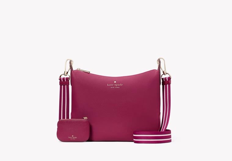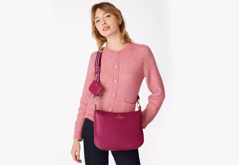 Description: Rosie Small Crossbody bag with two carrying straps and a Madisonn small slim card holder. Our crossbodies are perfect if you want to carry your important things without all the bulk. Plus, your hands are free to keep up with all your group texts and grip that vanilla latte. 8.5'h x 11.87'w x 3'd, strap drop: 49" longest length, pebbled leather, metal pinmount logo, two way spade jacquard lining, exterior: detachable coin purse, top zip closure, dust bag not included, imported, Style No. K5807